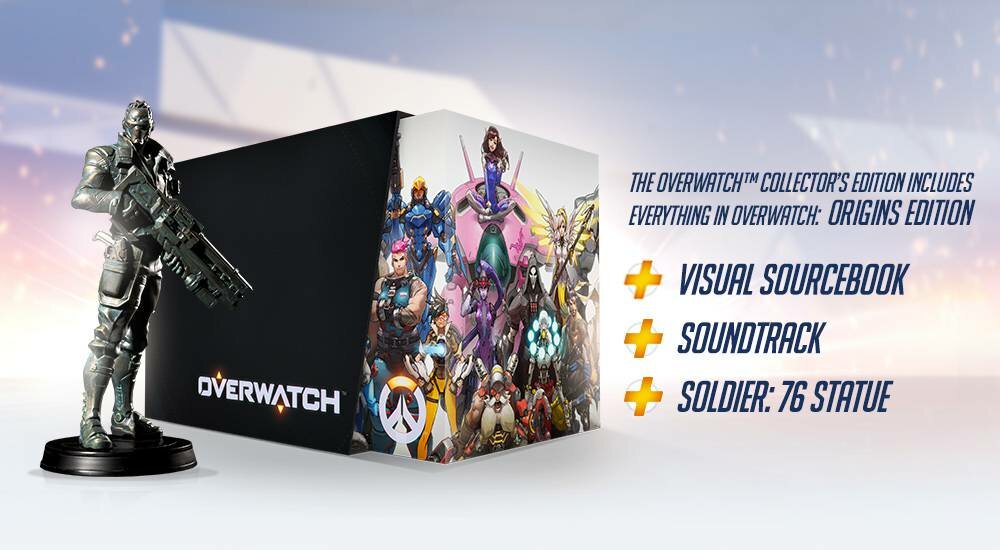 Overwatch va fi disponibil și într-o serie limitată numită Collector’s Edition. Aceasta va conține Origins Edition, care include o sumedenie de plus-uri pentru cei ce vor achiziționa această versiune a jocului. Inclus în Collector’s Edition se mai află și o carte cu diverse imagini din joc, artă conceptuală și multe altele. În plus, Collector’s Edition mai include sountrack-ul Overwatch și o statuie a Soldatului 76.