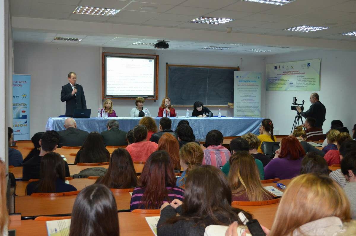 Conf. univ. dr. Corina Ene, managerul de proiect, le-a comunicat celor prezenți care au fost obiectivele realizate ale proiectului și oportunitățile multiple de care au beneficiat cei 210 de studenți din grupul țintă.